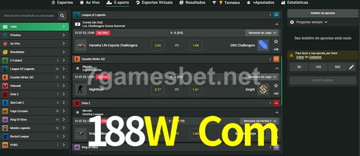 A aposta 188W Com oferece aos jogadores a experiência mais conveniente de apostas em eSports!